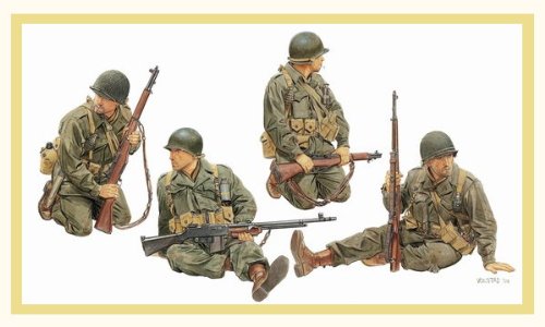 The column of olive-drab colored M4 Sherman tanks ground its way through the dusty, narrow lanes of northern France. On either side, thick vegetation and hedgerows pressed in. Clumps of battle-weary GIs sprawled on the engine decks of the Shermans, exhausted after continuous combat but grateful for the free ride. Their weapons remained close at hand, ready for an ambush or the next engagement with their German adversaries. Such a scene can now be created thanks to the launch of Dragon?s latest Gen2 figure set. The 1/35 scale set includes four U.S. Army soldiers suitable for scenes in the 1944-45 period. These American tank riders are the first of their kind to be made available, making the set a valuable asset. Dragon has recently produced some accurate Sherman kits, and at last there are now infantry figures to populate these tanks. Each of the four figures is strikingly posed, either sitting or kneeling, and they have been carefully sculpted to fit onto a Sherman engine deck. Detail is sharp and incredibly refined in keeping with their Gen2 status. Combined they form an impressive NW European 1944-45 scene for Shermaholics. But of course, these figures are also inherently versatile as they can be depicted resting in just about any context. As with previous Gen2 figure sets, these GIs are equipped with the most detailed and latest in molded weaponry such as the Garand M1 and BAR. Their personal equipment is equally well represented in high-quality molded plastic. Indeed, the